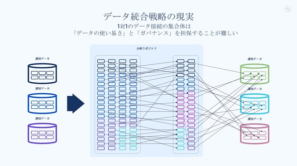 「データ資産をどんどんつなげたいというビジネスニーズに応えて、従来の仕組みのままでクラウドサービスとの連携を進めると、メンテナンスしきれないぐらい複雑になってしまいます。結果として、データの一貫性やガバナンスの確保を困難にし、何が新鮮で信頼できるデータかが分からなくなってしまうのです」