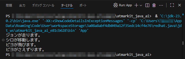 ビルドして実行すればinheritanceプロジェクトと同じ結果となりますが、その前にコードを少し書き換えてもらいましょう。「他に追加や修正したい点があればご指示ください。」と言ってくれていますしね。遠慮なくいきましょう。