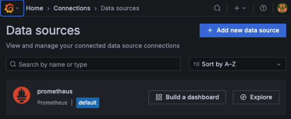 次にPrometheusとGrafanaを接続します。http://{Prometheus、Grafanaのホスト名}:3000/connections/datasources/newにアクセスし、「Add new data source」を選択します。