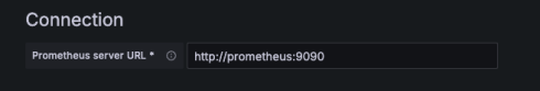 Data Sourceの作成画面では、Prometheus server URLにhttp://prometheus:9090を入力し、画面下部から「Save & test」を選択し保存します。