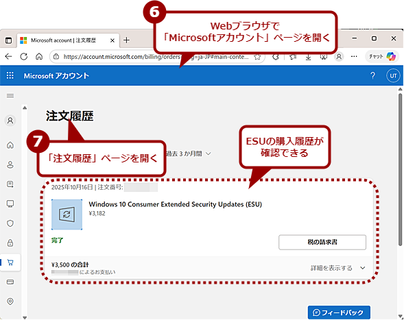 Microsoft StoreでESUを購入した結果、Microsoftアカウントの注文履歴でESUを購入したことが確認できる程度で、無料でESUを有効化するのと違いはなかった。