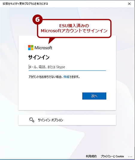 ローカルアカウントでサインインしているWindows 10でESUを有効化する場合でも、ESUはMicrosoftアカウントにひも付くためMicrosoftアカウントが必要になる点には注意してほしい。