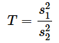 F検定では、検定統計量Tは、