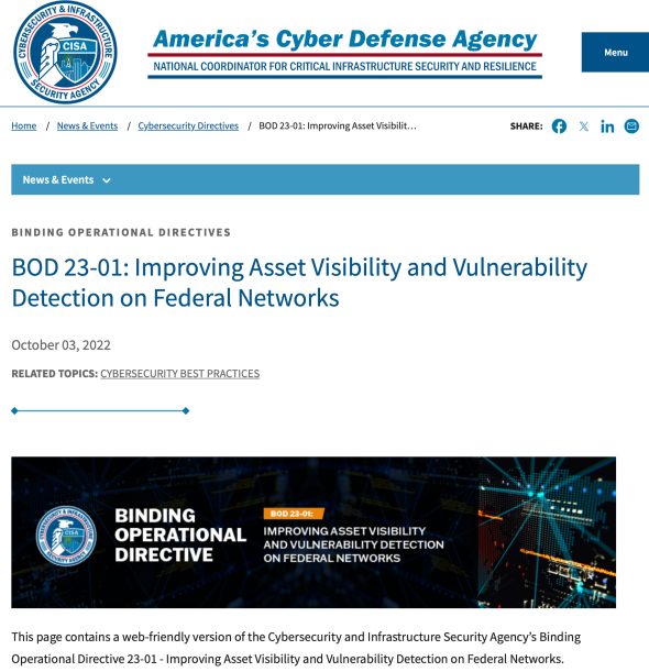 ASMの運用がいかに厳格であるべきかについては、米国CISA(サイバーセキュリティ・インフラストラクチャセキュリティ庁)が出している運用指令「BOD 23-01/23-02」が参考になる。この指令では、米国政府機関に対して下記のような指示を行っている。