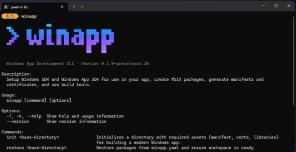 Microsoftは2026年1月22日(米国時間)、「Windows App Development Command Line Interface」(winapp)のパブリックプレビュー版を発表した。winappは、幅広いフレームワークやツールチェーンにおけるWindowsアプリの開発ライフサイクルを簡素化することを目的としている。
