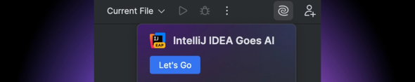AIチャットを初めて利用する場合は、IDEの右上隅にあるJetBrains AIウィジェットを開き、「Let's Go」をクリックして、指示に従ってAI Assistantプラグインをインストールする。