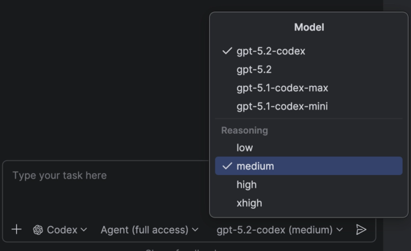 JetBrains IDEでは、AIチャットを通じてCodexをアクティブエージェントとして利用できる。Codexを使用することで、IDE内から実際のコーディングタスクを委任し、エージェントに推論、実行、反復作業を行わせることが可能になる。