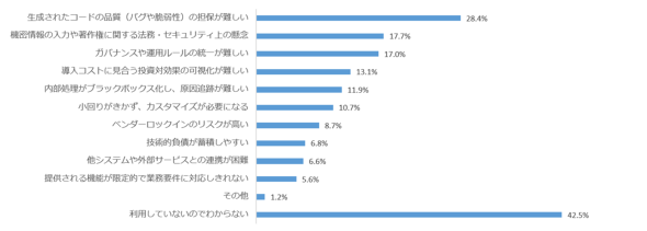 生成コードが一見正しく動作するとしても、設計意図との整合性や例外処理、非機能要件まで十分に担保されているとは限らない。レビューや品質保証の体制が再設計されないまま導入が進めば、品質管理は不安定になる。