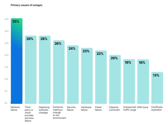例えば、オブザーバビリティーを実現するツールを提供するNew Relicの調査では、システム停止の主な原因として以下が上位に挙がっています。