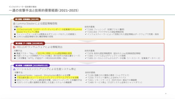 JLRへの攻撃には、単一のイベントではなく、数年がかりで計画・実行された多段階のプロセスがあった。西尾氏は、公開情報を基にして考察していく。