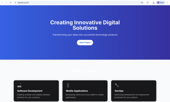 分析された全ての拡張機能は「tapnetic[.]pro」ドメイン配下のインフラと通信していた。このドメインは正規サービスを装うWebサイトをホストしているが、Webサイトはマーケティング風のコンテンツを表示するだけだ。機能するサービスやダウンロード機能、ユーザーアクションは存在せず、実体のある製品やサービス、所有者の情報も確認されていない。分析時点では、このサイトは主にカバーインフラ(偽装用基盤)として機能しており、通信は拡張機能が制御するサブドメインを通じて行われていた。