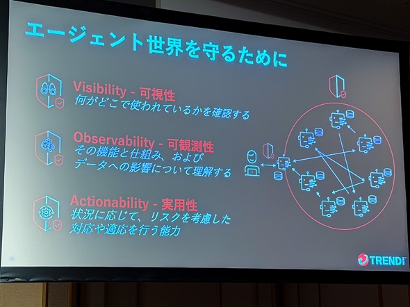 AIエージェントが前提となる時代が間もなく来る中、セキュリティはどこまで変わるのか。トレンドマイクロが打ち出した新戦略の裏には、従来とは異なる“統治”の発想があった。企業は何を可視化し、どこまで任せるべきか、そのヒントを探る。