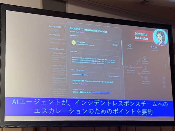 しかしインシデントが既に発生していたら、初期対応のアナリストのスキルだけでは対処し切れない。この場合、AIエージェントはそれを判断し、専門のIR(インシデントレスポンス)チームへのエスカレーションをサポートするという。