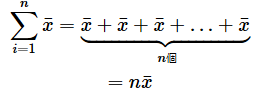 となります。Σの中の式がxiなら、iの値によって、異なる値を足すことになります。しかし、添字が付いていないので、