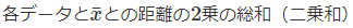 します(=距離の2乗を求める)。そして、それらを全て足します(=総和を求める)。