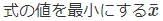 さて、今回は、数値の代わりに文字を使い、総和をΣで表してみます。そうすれば、平均値を求める式を一般的に表すことができそうですね。そこで、各データを{x1,x2, ... , xn}とし、各データとの距離の二乗和が最小になるときの値を