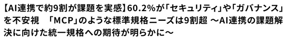 これについてクラウドエースは、「AI連携の効率化と安全性を両立するためには、統一された規格の普及だけでなく、導入を支援する環境整備が不可欠だ。特に、実践的な開発ツールの提供や成功事例の共有、専門的なサポート体制の構築など、企業が安心してAI連携を推進できる基盤作りが求められている」と述べている。