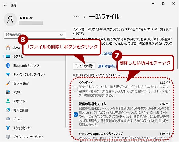 「一時ファイル」などの「隠れごみ」ファイルの削除方法は、Tech TIPS「『C:ドライブがいっぱい』を回避、Windows 11の『隠れごみ』を根こそぎ削除する究極テク」で詳しく解説しているので、参照してほしい。