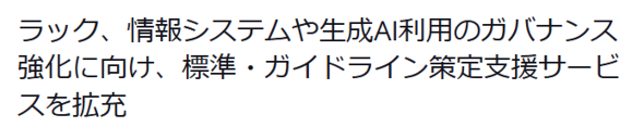 同社が拡充したサービスは「情報セキュリティ・情報システム標準策定支援サービス」と、「生成AI利用・開発ガイドライン策定支援サービス」の2つ。