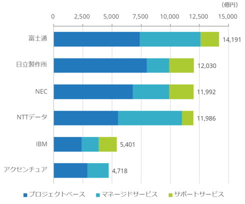 マネージドサービス市場では、前年までのプロジェクトベースのビジネスの後続としての運用サービス案件の獲得、契約更改時のサービス価格の上方改定などが各ベンダーの売り上げ伸長に寄与した。