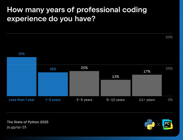 Python開発者の半分は「開発経験年数は2年以下」 JetBrainsが2025年版動向を公開:Web開発での人気が再燃