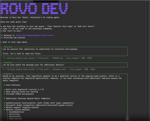 これにより、開発者はコードベースの理解、機能の実装、ドキュメント生成など定型作業の工数、負荷を削減できる。例えばコードの構造についてもプロンプトに自然言語で「コードの構造を教えてほしい」と指示すれば、Rovo Devがリポジトリ全体を分析、回答する。実際にβ版を利用した開発者からは、「ターミナル環境で利用できるAIエージェントの『Claude Code』よりも使い勝手が良い」とおおむね高く評価されているという。
