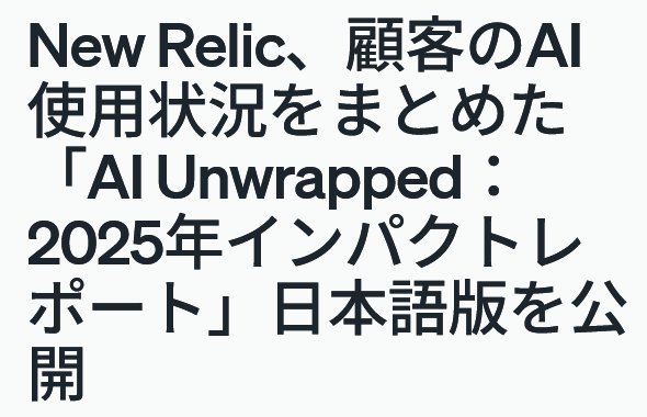 New Relicは2025年8月21日、「AI Unwrapped:2025年インパクトレポート」を公開した。同社のオブザーバビリティ(可観測性)プラットフォームのアカウント8万5000件における2024年4月30日〜2025年4月30日のAI(人工知能)使用状況をまとめたものだ。
