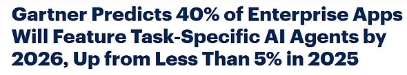Gartnerは2025年8月26日、「2026年までにエンタープライズアプリの40%がタスク特化型AIエージェントを搭載する」という予測を発表した。