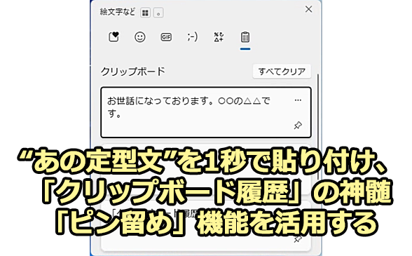 【Windows 11】“あの定型文”を1秒で貼り付け、「クリップボードの履歴」の神髄「ピン留め」機能を活用する:Tech TIPS