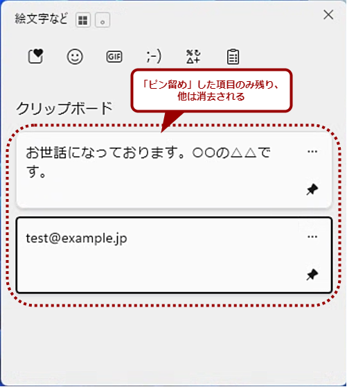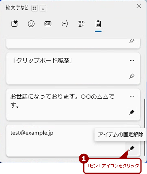 「クリップボードの履歴」で定型文を「ピン留め」する(2)