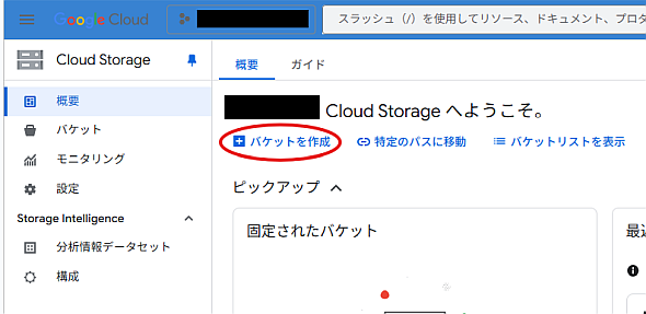「バケットを作成」を選択すると、バケット情報登録画面が表示されるので、以下の要領でバケットの情報を入力します。