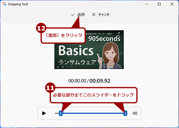 リハーサルをしていても、戸惑わずに一発で操作するのは難しいものだ。そのような場合は、録画後にSnipping ToolのトリムやWindows 11の標準ツールであるMicrosoft Clipchampで余計な部分を編集すればよい。