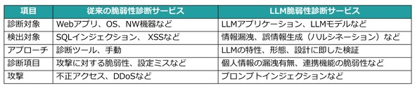 生成AI(人工知能)の普及に伴い、学習データやプロンプト(生成AIへの指示)を悪用した情報漏えい、誤情報の生成、「データポイズニング」(データ改ざん)といった新たな脅威が顕在化している。EGセキュアソリューションズは、「従来のセキュリティ診断ではこうした脅威の検知が困難だ。そのため、LLM脆弱性診断サービスを投入した」と説明する。