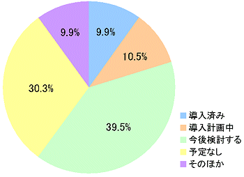 導入状況を見ると、「導入済み」が約1割、「計画中」「検討中」を合わせると半数を超えており、企業のKMへの重要性の認識度や注目度は非常に高いと考えられる。