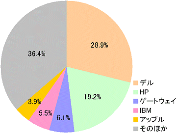 | 2002年第3四半期米国PC市場ベンダ別出荷台数(シェア) [ガートナージャパン] |