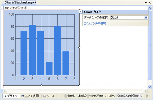 新規のWebフォーム(Stacked.aspx)を作成したら、フォーム・デザイナから以下の画面の要領でチャート・コントロールを配置する。