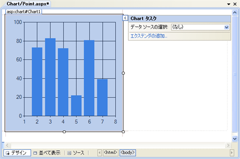 新規のWebフォーム(Point.aspx)を作成したら、フォーム・デザイナから以下の画面の要領でチャート・コントロールを配置する。