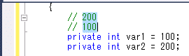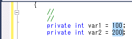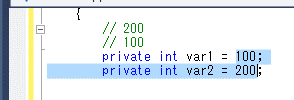 という不要な部分まで選択されてしまう。この問題に対処するには、Visual Studioのコード・エディタの標準機能であるボックス選択を用いればよい。