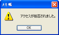 このサンプル・プログラムによってファイルを暗号化した後、例えばいったんWindowsをログオフして別ユーザーでログオンし直し、そのファイルを開こうとすると、次の画面のようにエラーとなり開くことができない。