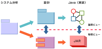 Javaによる実装では、論理モデルとしてJavaクラスがプログラミングされますが、これを物理的にJARファイルとしてまとめてコンポーネント化することになります。