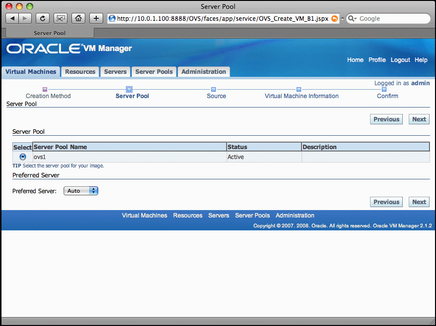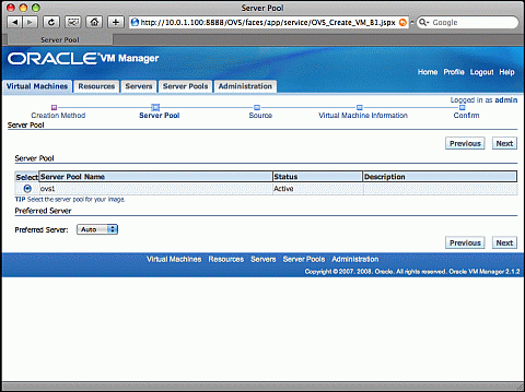 仮想マシンを作成するServer Poolを選択します。現時点では1つしか作成されていないのでそのまま「Next」ボタンをクリックします。