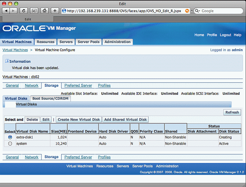 disk = ['file:/OVS/running_pool/92_db1/system.img,xvda,w', 'phy:/dev/sdb,xvdb,w']