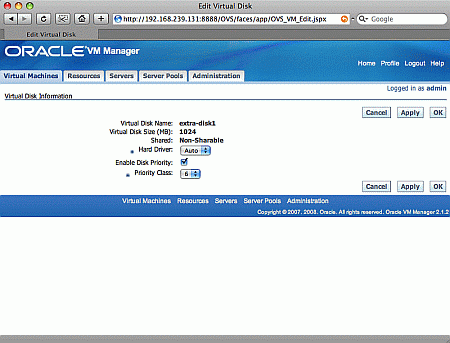 Oracle VM 2.1.xでは、この形式でゲストOSに仮想ディスクを割り当てるにはゲストのドメイン設定ファイルを編集する必要があります。このファイルはvm.cfgという名前で以下のロケーションに保存されています。
