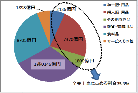 〔図表2〕から明らかなことは、もし、紳士服・用品(2136億円)、婦人服・用品(7370億円)、その他衣料品(1805億円)のほとんどが消化仕入れであった場合、これら全売上高に占める割合35.3%が(場所代部分を除いて)IFRSが導入された時期に一瞬にして吹き飛ぶことになるのだ。
