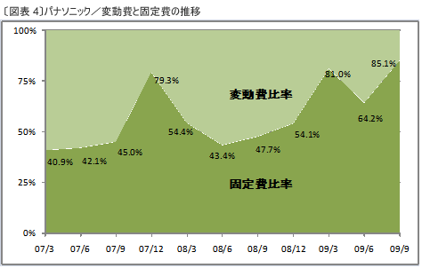 そもそもパナソニックの、2009年9月期に係る決算短信や四半期報告書を参照したところ、「固定費削減」の文言は確かに登場するが、「損益分岐点の引き下げ」と「限界利益率の向上」は登場しない。投資情報誌の編集者はどうやら、机上の「イメージ」だけで作文をしてしまったようだ。