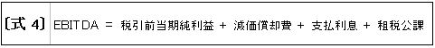 第12回コラム(ソフトバンク編)では、EBITDAという怪しげな指標を取り上げた。〔式 4〕にその構成要素を再掲しておく。