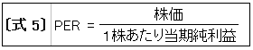 ここからは、株価と連動させた指標である。有名なのが〔式 5〕で表わされるPERだ。
